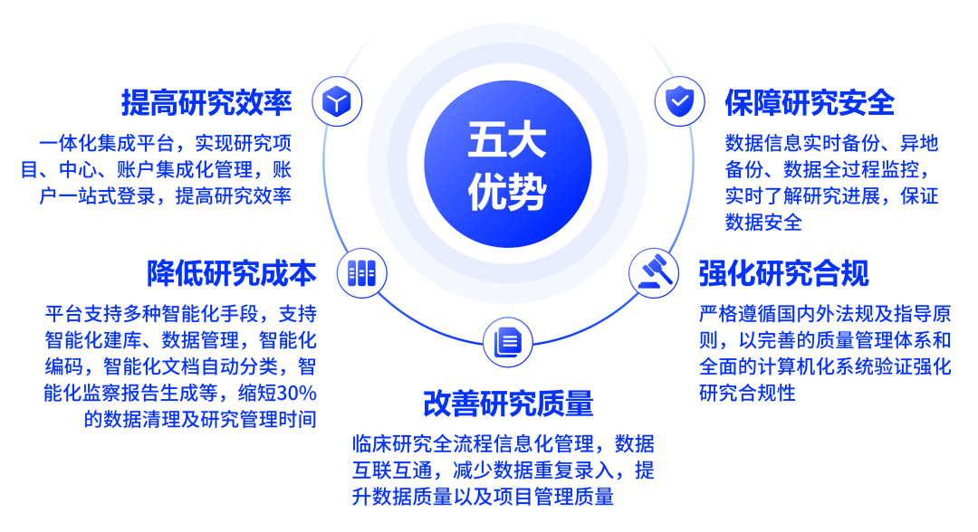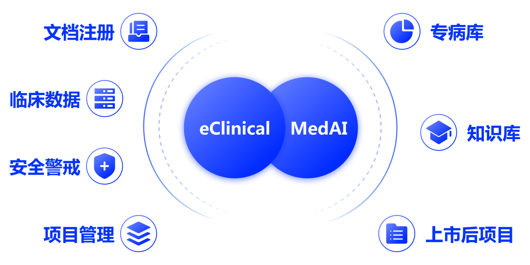 百奥知依托eClinical临床研究一体化信息平台和MedAI智能研究云平台两大核心技术,以临床数据为中心,医学智能为目标,搭建以患者为中心的医药研发全流程协作生态,提供注册研究一体化、上市后研究一体化与医学创新研究一体化三大解决方案,帮助医药企业、CRO等全面提升医药研究效率、加速产品上市,提升产品销量;助力医生改善患者服务,加速成果转化;促使患者获得精准诊断与精准用药。